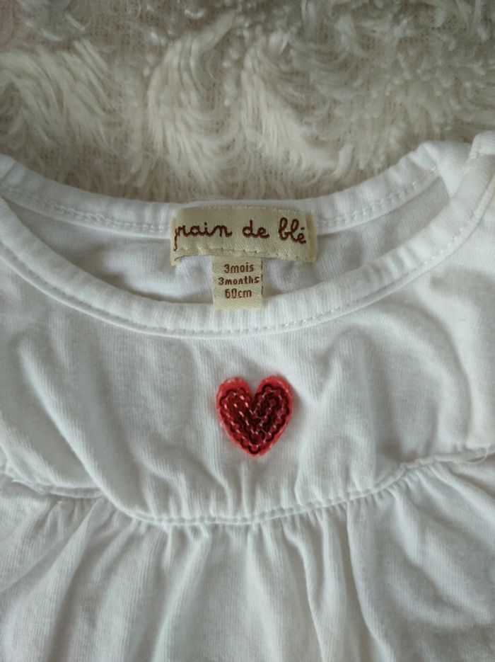 Tee shirt tunique chemise manches courtes Fille 3 mois cœur Grain de blé - photo numéro 3