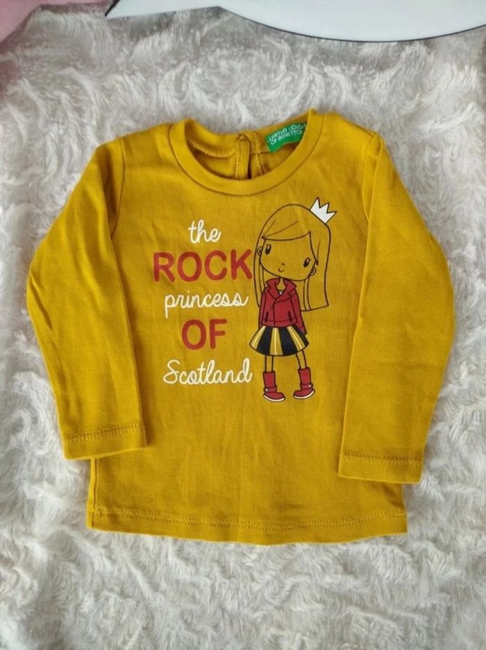 Tee shirt chemise manches longues Fille 3/6 mois "Thé rock princess of Scotland" 100% coton - photo numéro 1