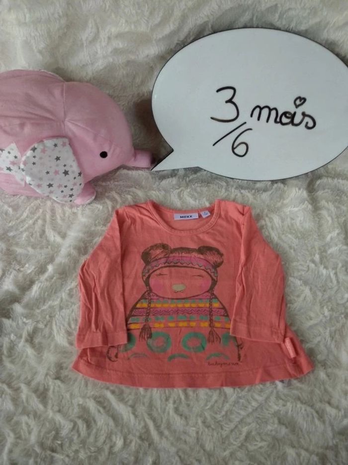 Tee shirt chemise manches longues Fille 3/6 mois Indienne Mexx 100% coton - photo numéro 1