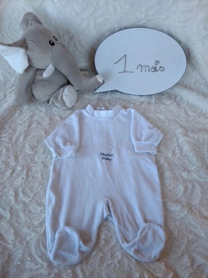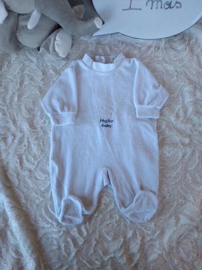 Pyjama grenouillère velours Garçon 1 mois "Hello Boy" Baby club - photo numéro 1