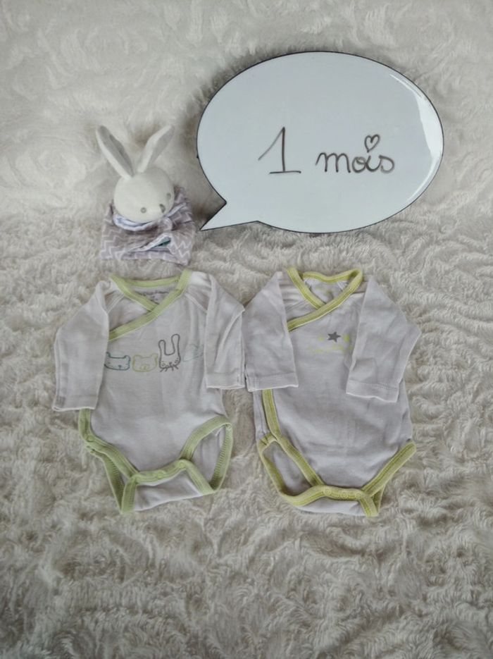 Lot de 2 bodies manches longues Mixte 1 mois Animaux et Star Kitchoun 100% coton - photo numéro 10