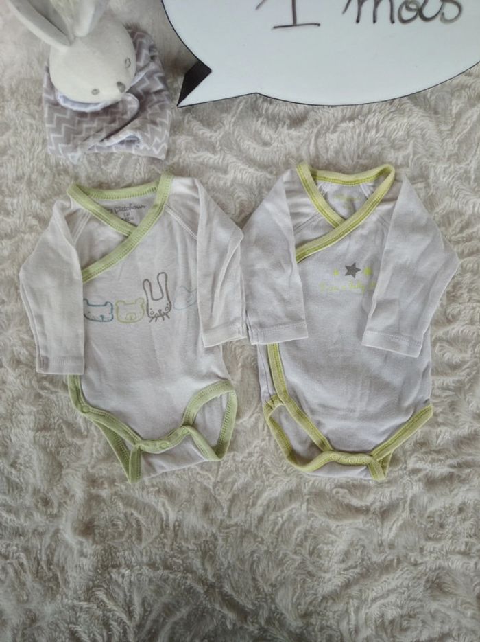 Lot de 2 bodies manches longues Mixte 1 mois Animaux et Star Kitchoun 100% coton - photo numéro 1
