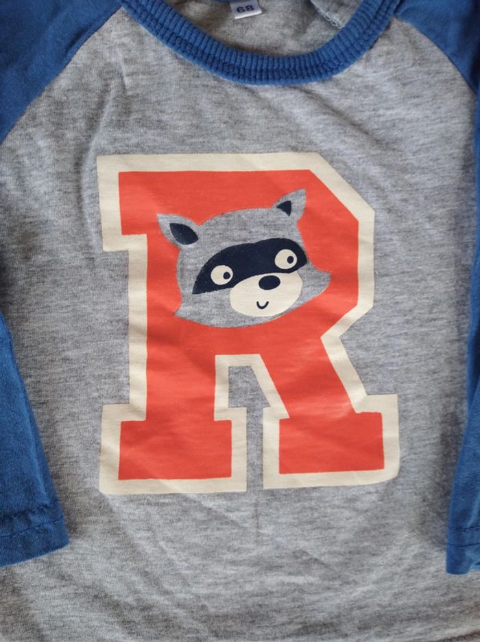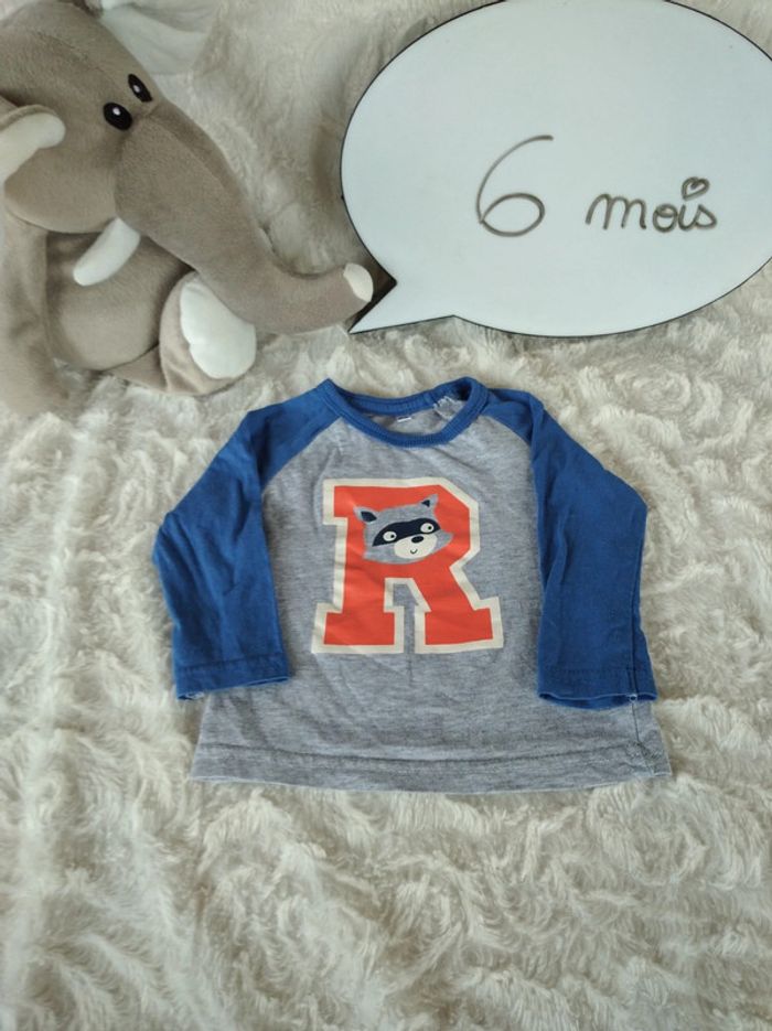 Tee shirt chemise manches longues Garçon 6 mois Raton laveur lettre R Zeeman 100% coton