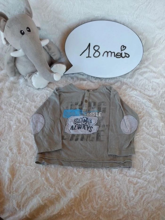 Bon état car porté plusieurs fois (très légèrement pelucheux et texte un peu craquelé-voir photos). #nathatfcGarçon18mois