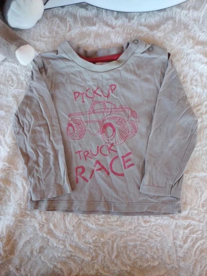 Tee shirt manches longues Garçon 18 mois Camion Prends ton pouce 100% coton "Pickup Truck race" - photo numéro 1
