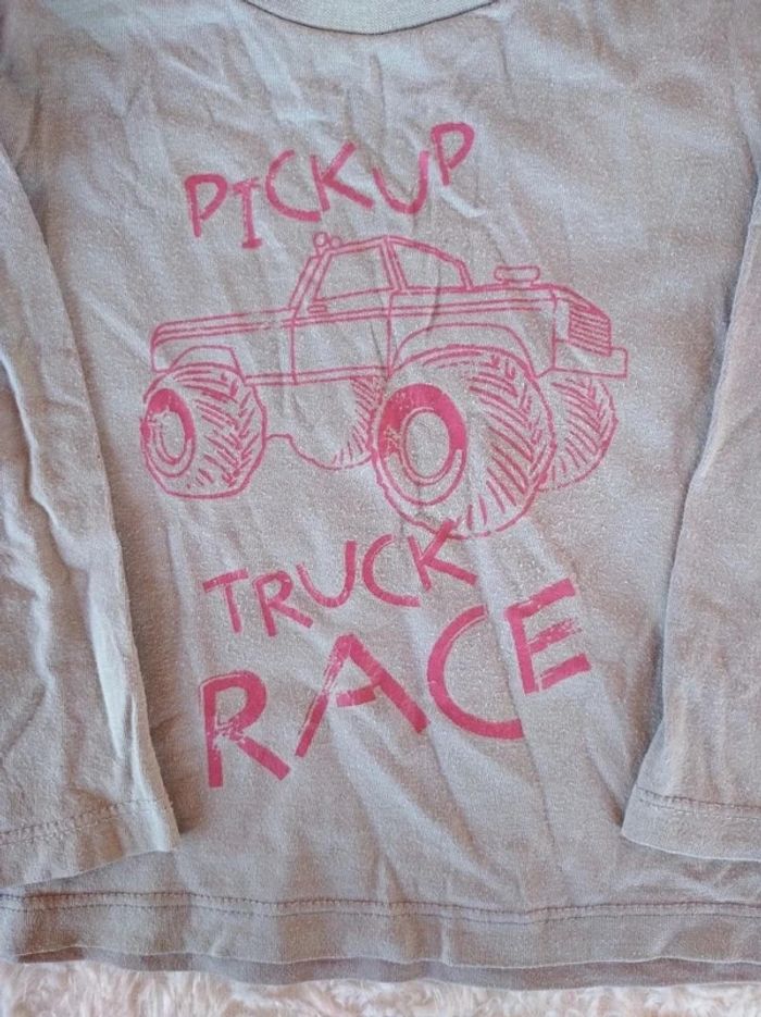 Tee shirt manches longues Garçon 18 mois Camion Prends ton pouce 100% coton "Pickup Truck race" - photo numéro 3