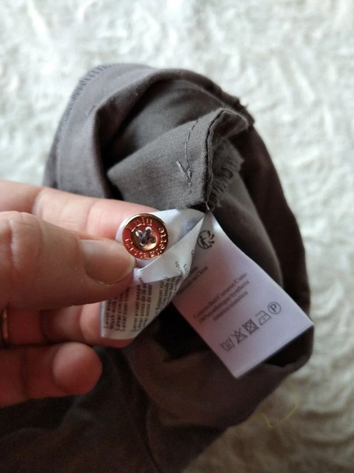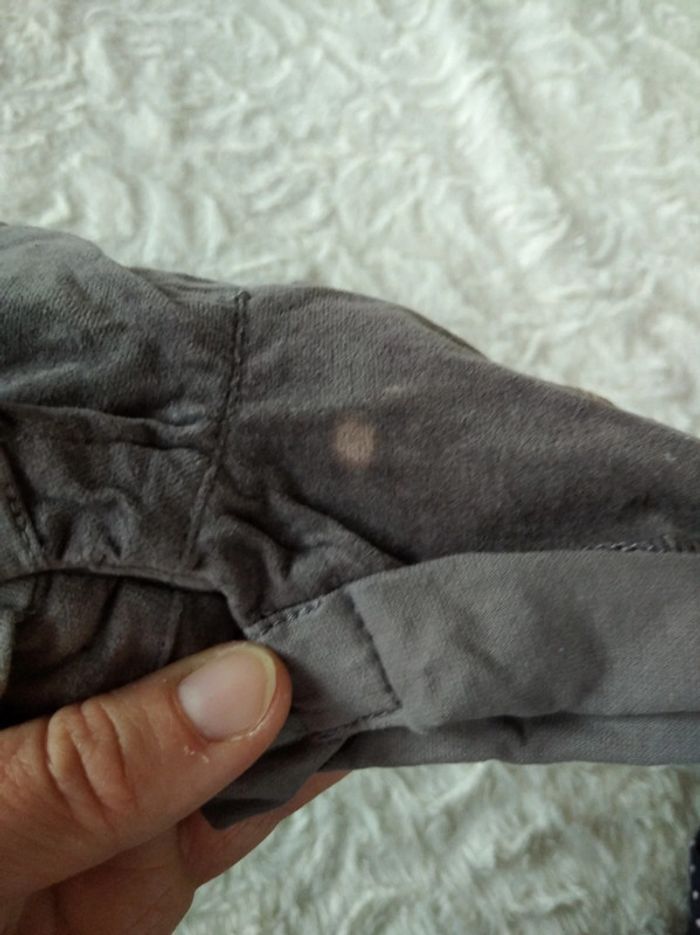 Bon état car peu porté mais une tâche de décoloration en bas à droite (voir la dernière photo). 2 niveaux de hauteur possibles pour les bretelles. Ouverture par pressions au niveau de l'entrejambe pour un change plus facile. #nathatfcFille6mois