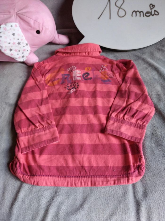 Tee shirt chemise Polo manches longues Fille 18 mois 100% coton Creeks Fleurs rayé - photo numéro 11