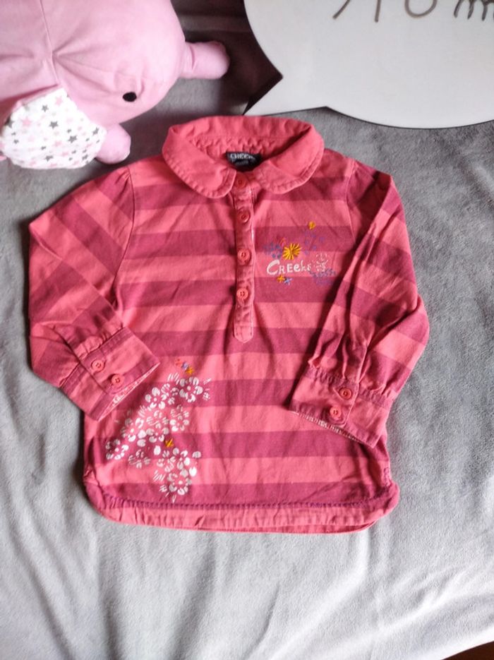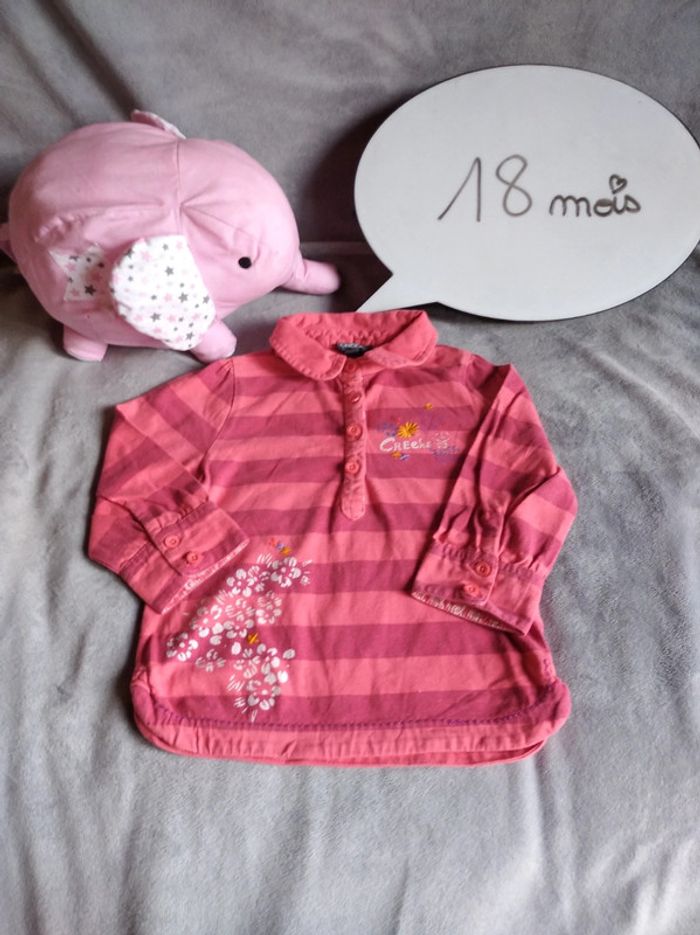 Tee shirt chemise Polo manches longues Fille 18 mois 100% coton Creeks Fleurs rayé - photo numéro 1