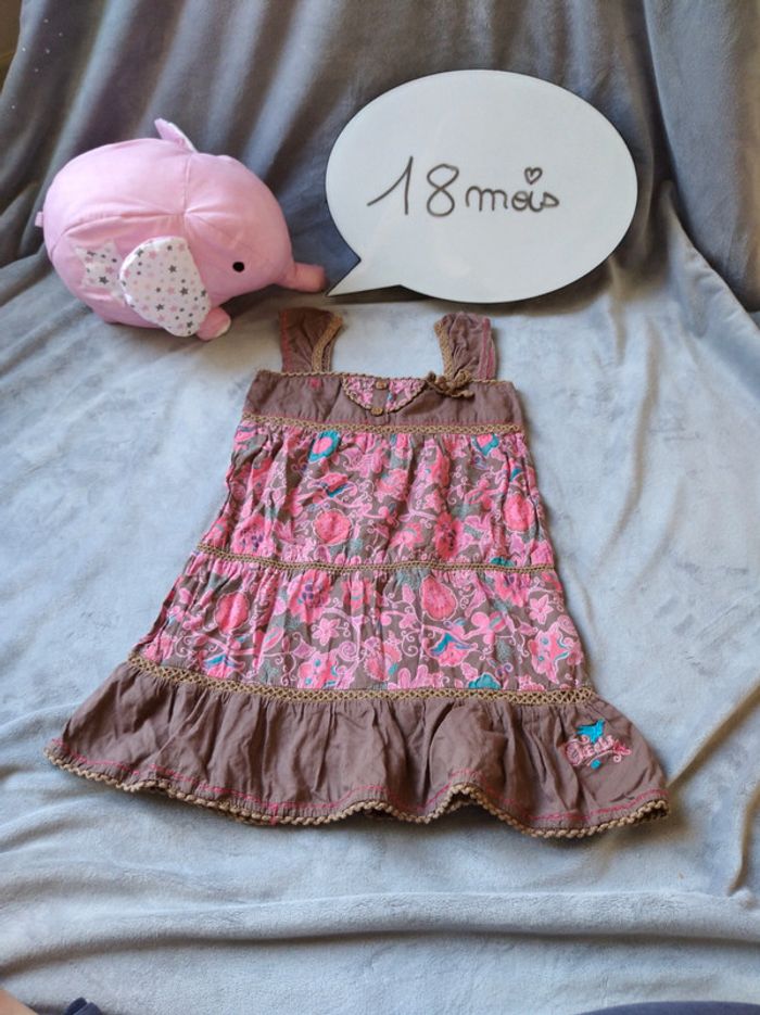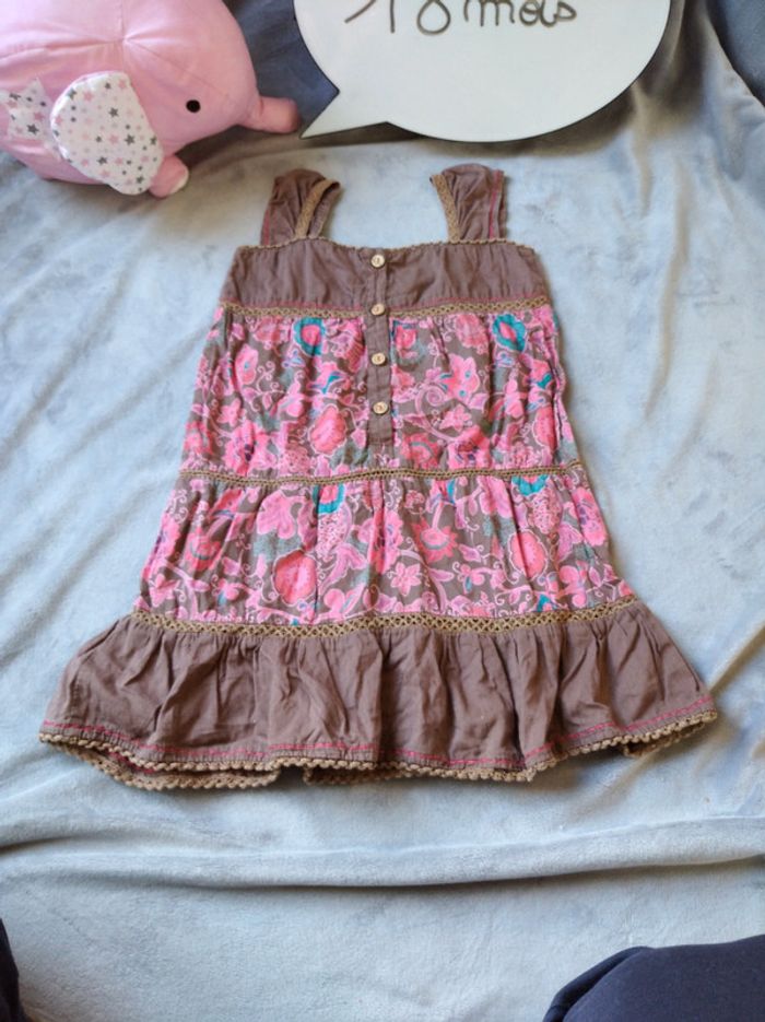 Robe Fille 18 mois marron à fleurs Creeks 100% coton La Halle