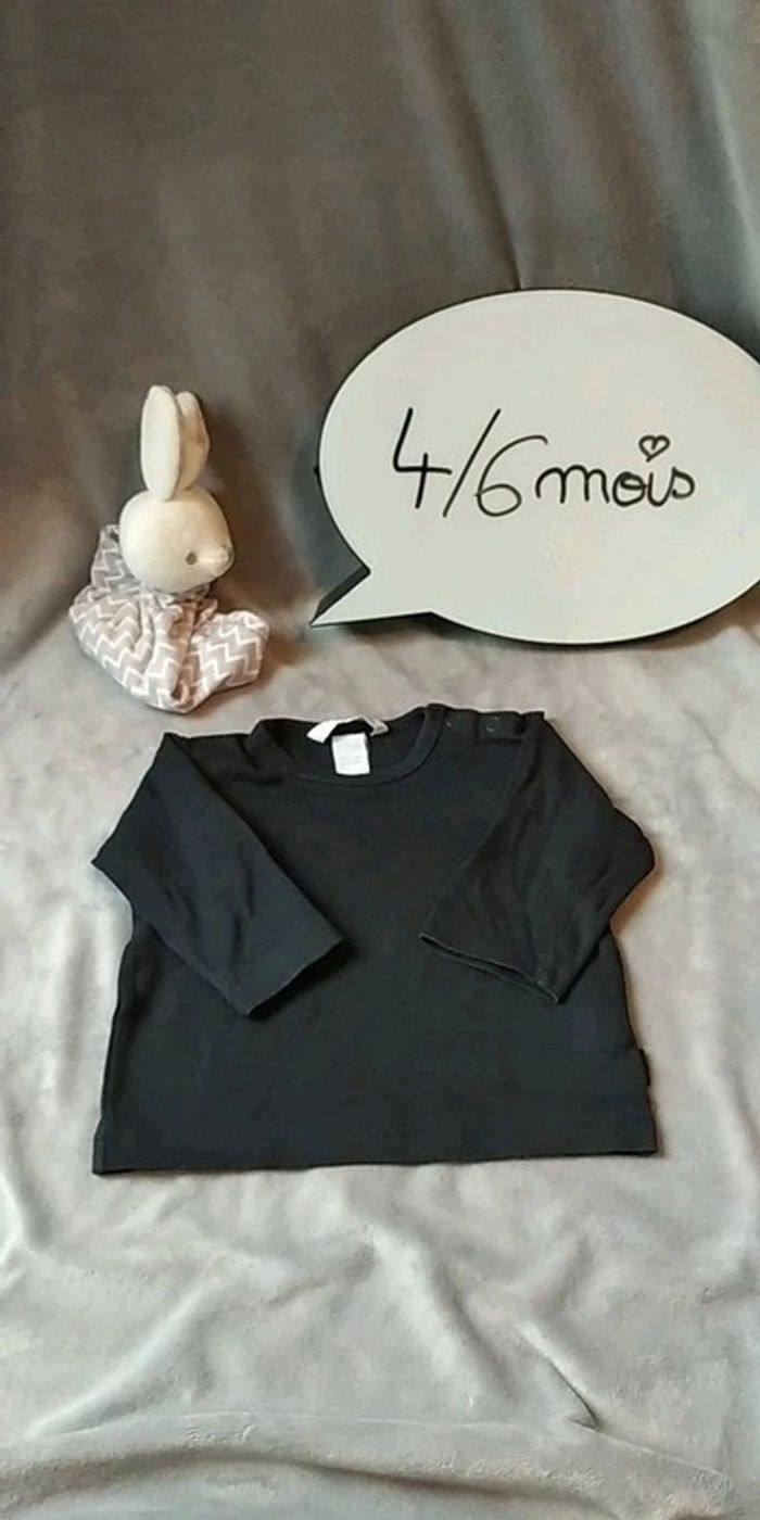 Tee shirt manches longues noir Mixte 4/6 mois 100% coton H&M
