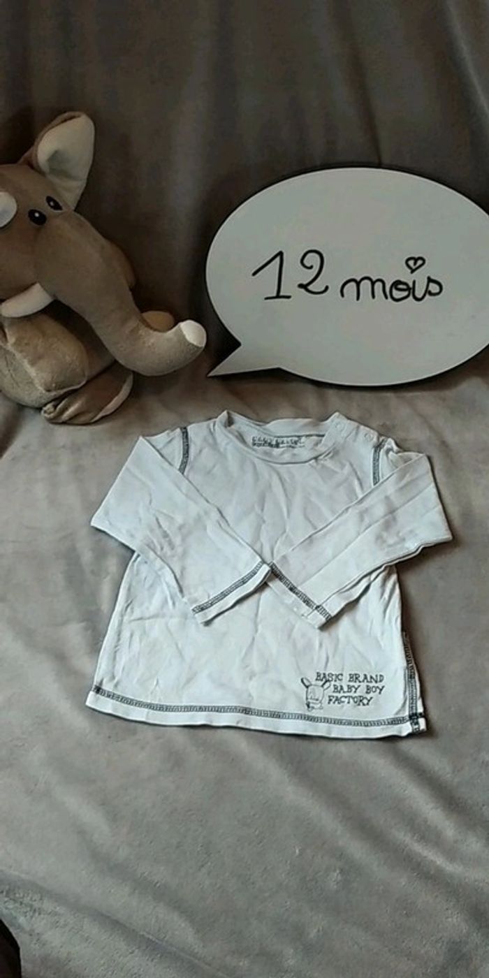 Tee shirt manches longues Garçon 12 mois Tape à l'œil 100% coton Basic Band Baby Boy Factory - photo numéro 1