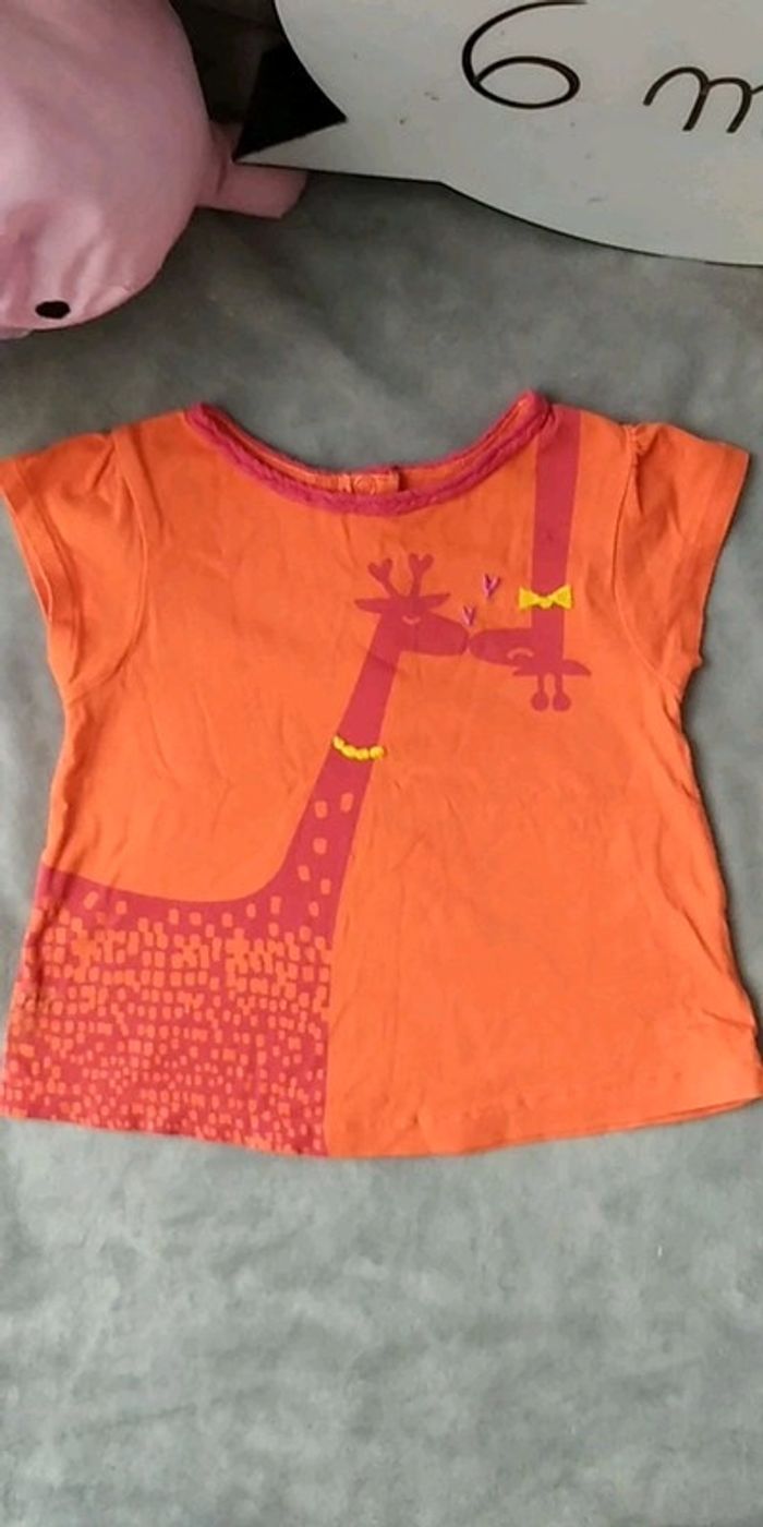 Bon état car hormis le petit défaut sur le cou de la girafe (voir la dernière photo), le tee shirt est en très bon état. Offert pour tout achat de plus de 10€ dans les rayons "bébé/enfant". Me le rappeler lors de votre commande. #nathatfcFille6mois