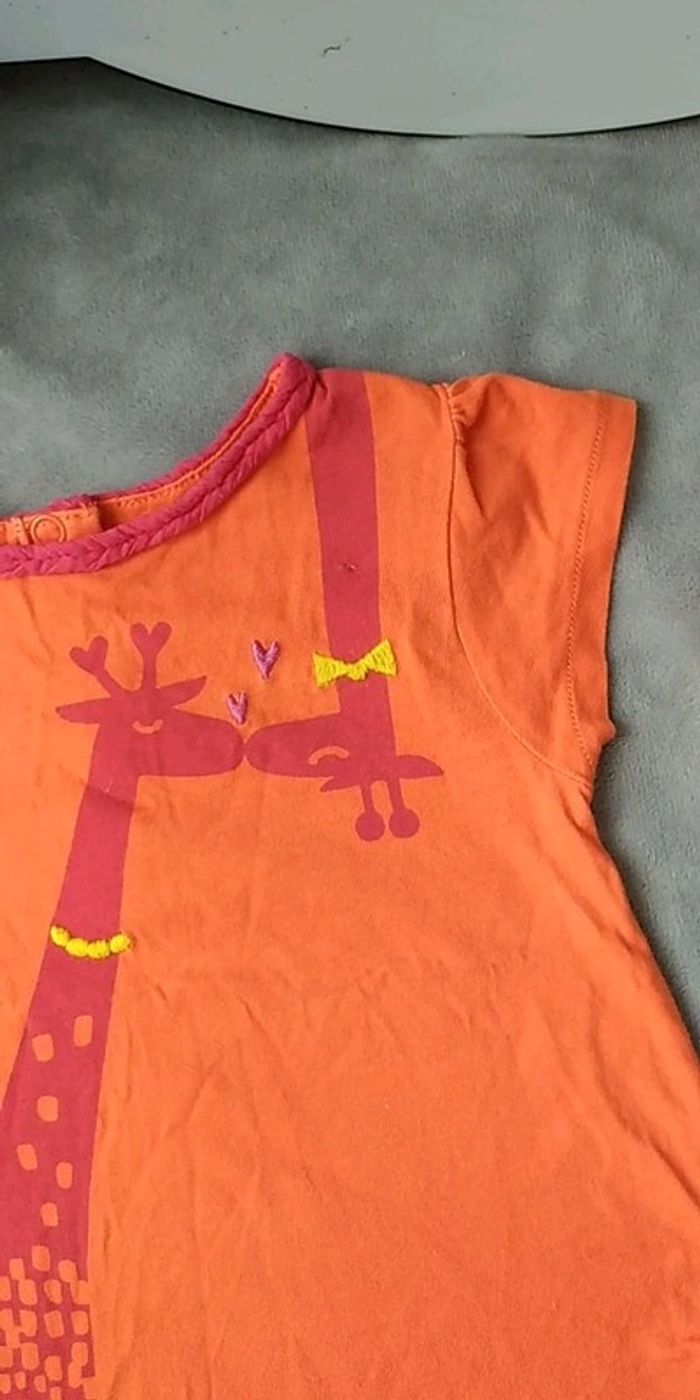 Tee shirt manches courtes Fille 6 mois Du pareil au même Girafe qui se font un bisou 100% coton - photo numéro 8