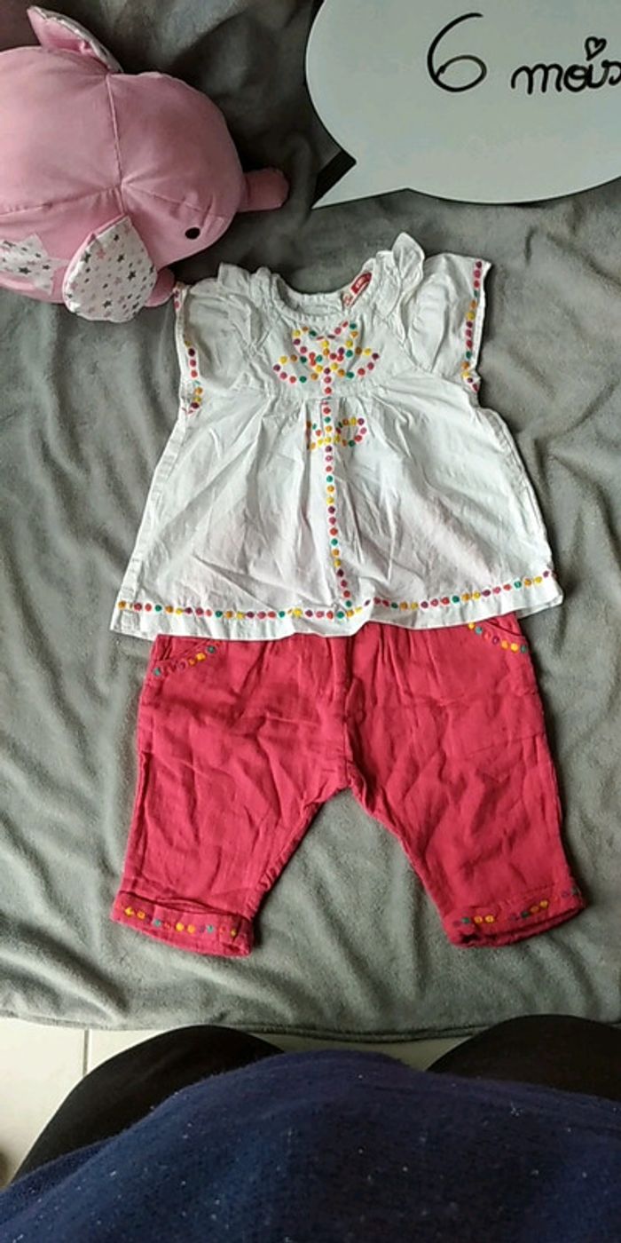 Ensemble été tunique manches courtes + pantalon Fille 6 mois 100% coton Du pareil au même