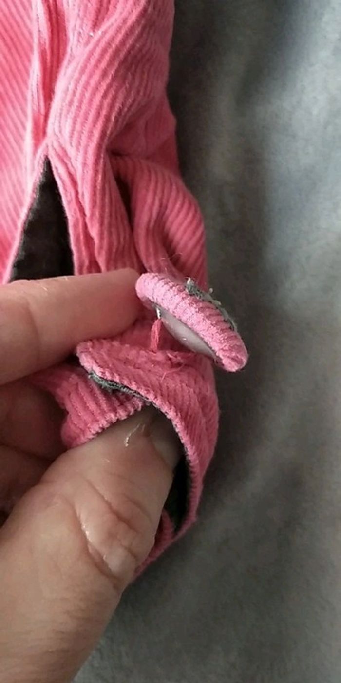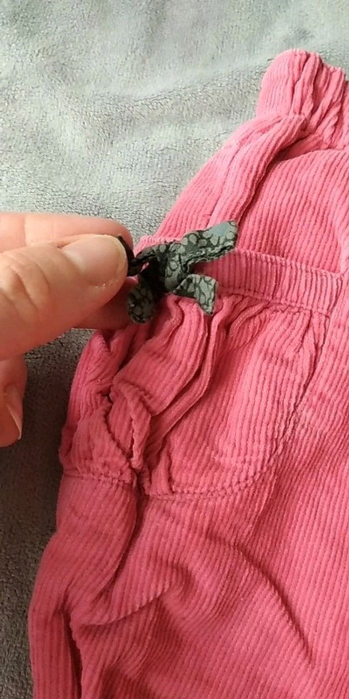 Bon état car porté plusieurs fois et le violet clair a une légère marque de décoloration sur l'arrière et le rose a un de ces boutons qui s'écarte un peu du pantalon (voir photos). #nathatfcFille6mois