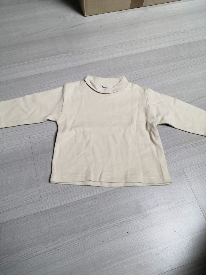 Je vends un tee shirts manches longues col roulé beige, taille 6 mois. Très bon état. Maison non fumeur. Envoi rapide et soigné.
