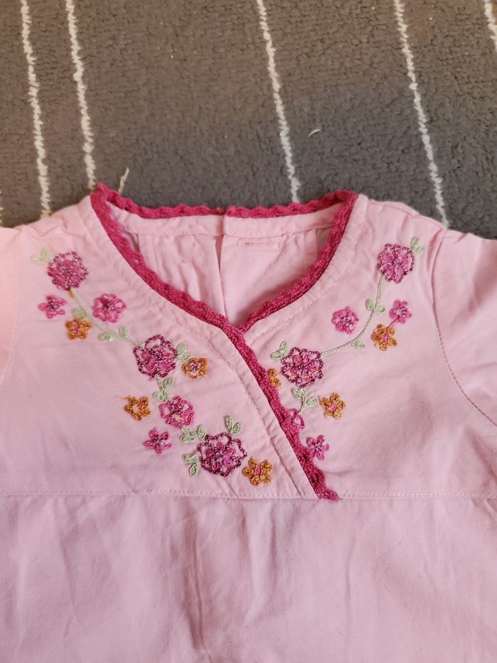 Ensemble chemise et jupe avec culotte intégrée avec dentelle et broderies. L'élastique de la jupe est peut être à revoir.