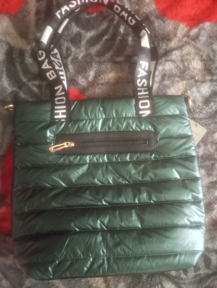 Sac a main manque juste la bandoulière couleur verte effet matelassé plein de rangement et profond neuf