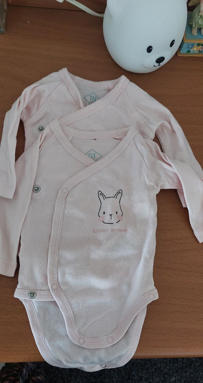 Lot de 2 body manches longues taille 1 mois, très bon état, aucune tâche