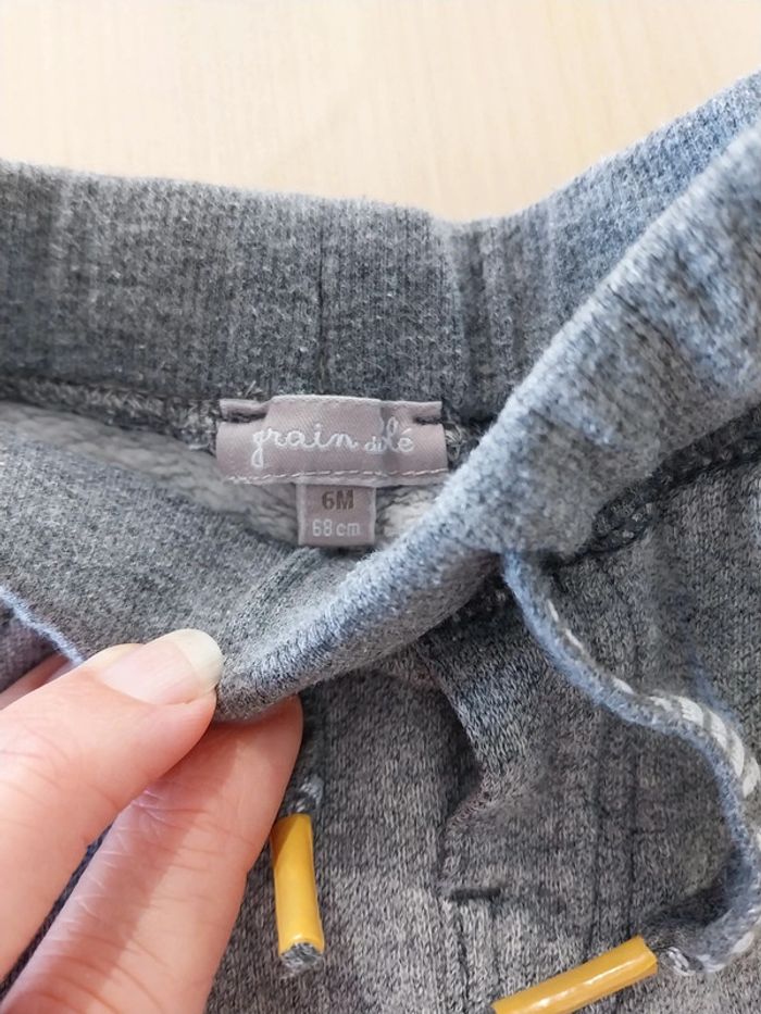 Pantalon souple bébé 6 mois gris grain de blé - photo numéro 3