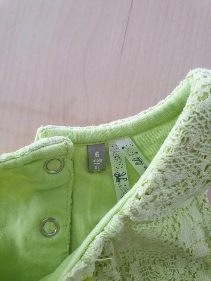 Robe fille 6 mois verte à dentelle doublure - photo numéro 2