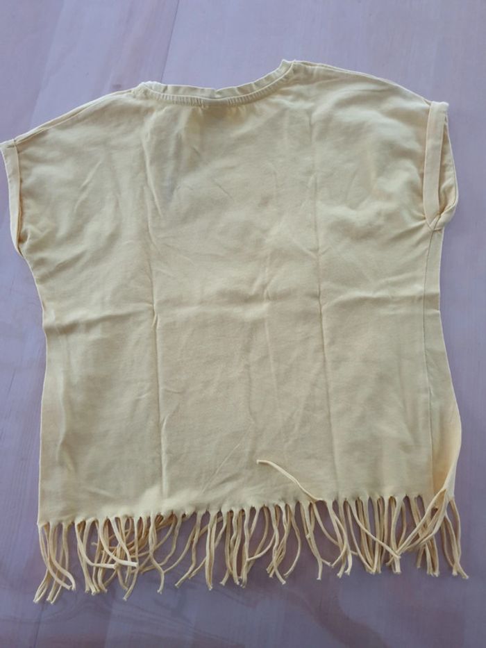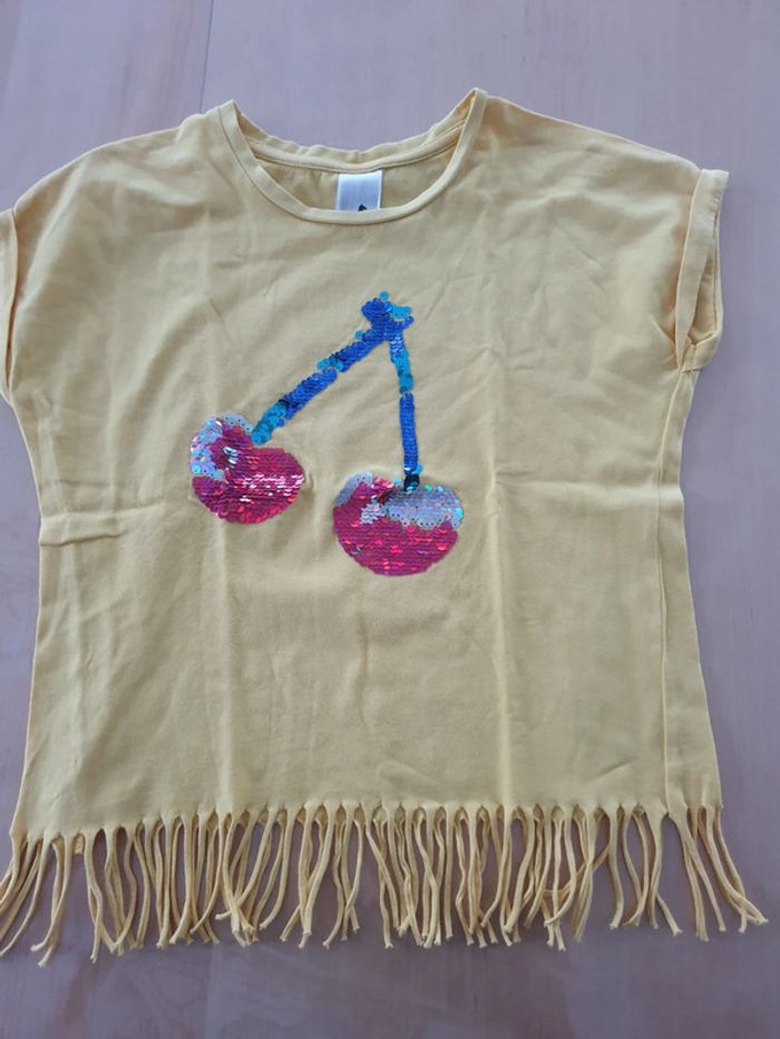 T-shirt 9 ans fille jaune sequins cerises franges - photo numéro 1