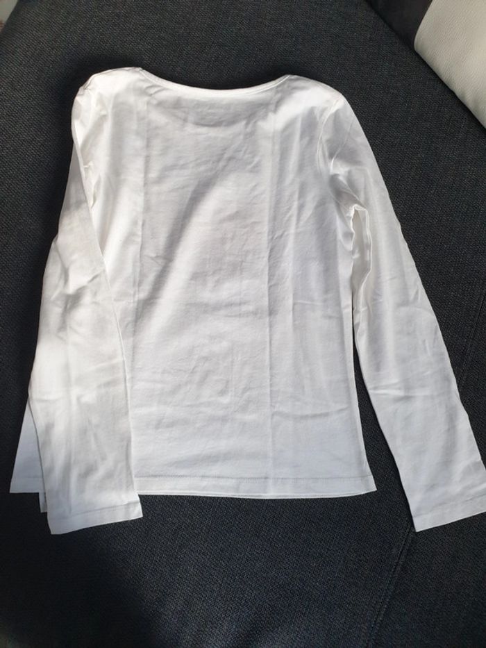 Pull fin t-shirt à manches longues fille 10 ans blanc Tour Eiffel - photo numéro 2
