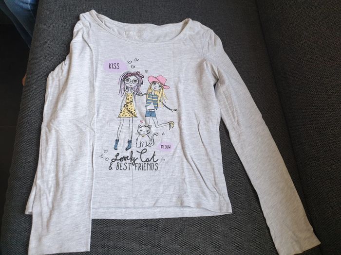 Pull fin t-shirt à manches longues fille 8 ans gris - photo numéro 1