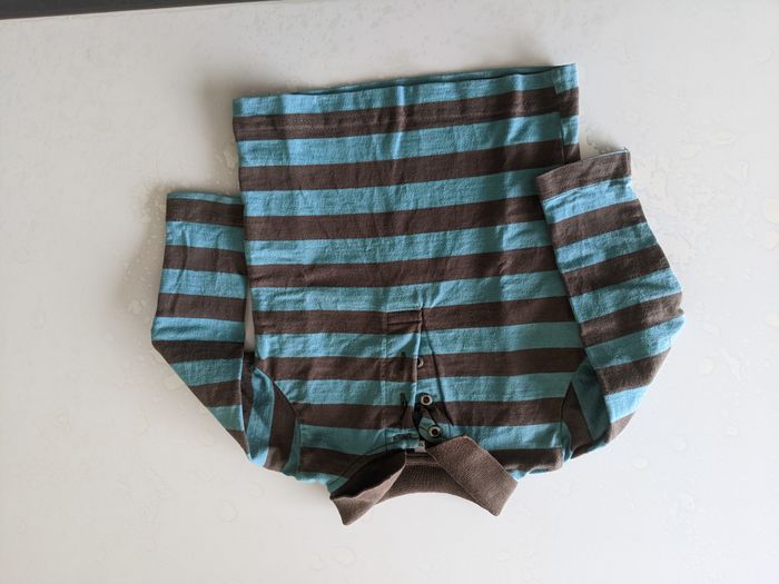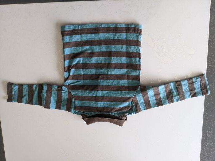 Ensemble T-shirt manches longues rayé bleu et marron+ salopette marron Taille 12 mois Marque inconnue En parfait état