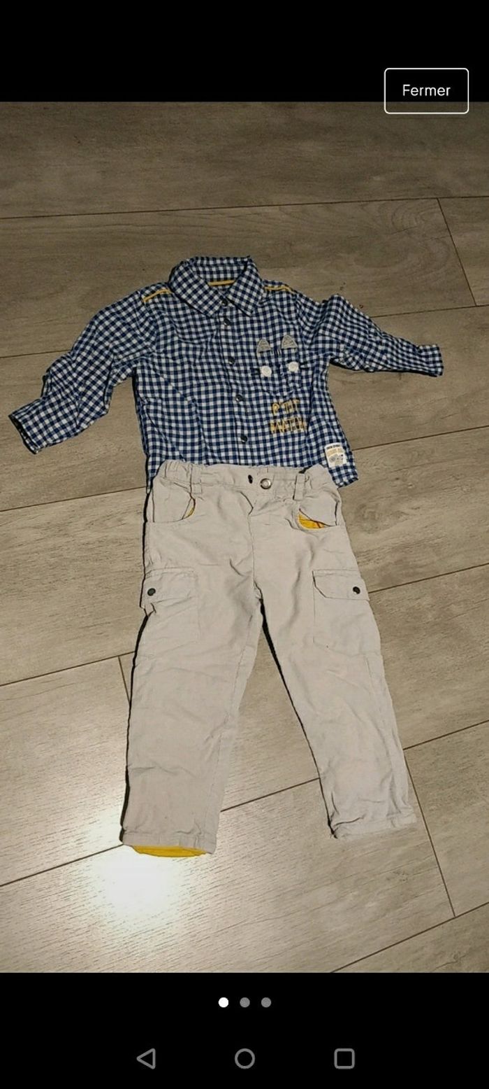 Pantalon côtelé Ceinture réglable Chemise a carreaux a boutons
