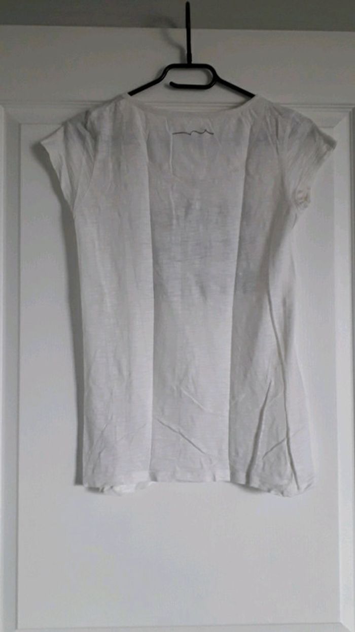 T shirt blanc très léger blanc (légèrement transparent) en coton Taille 1 (correspond à un S) Aucun défaut en bon état mais porté.