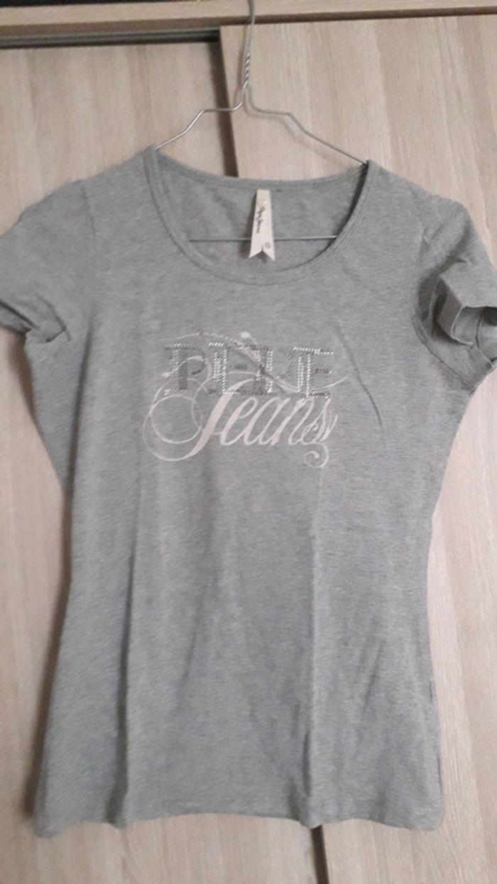 T shirt gris #pepejeans en #tailleS Des strass sur le motif de devant sont partis.