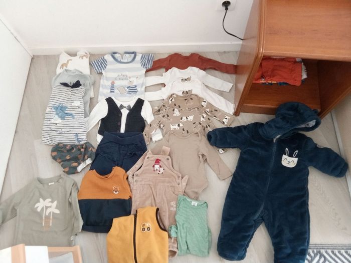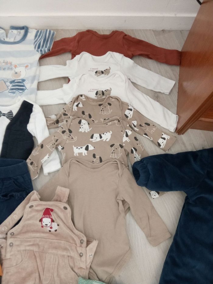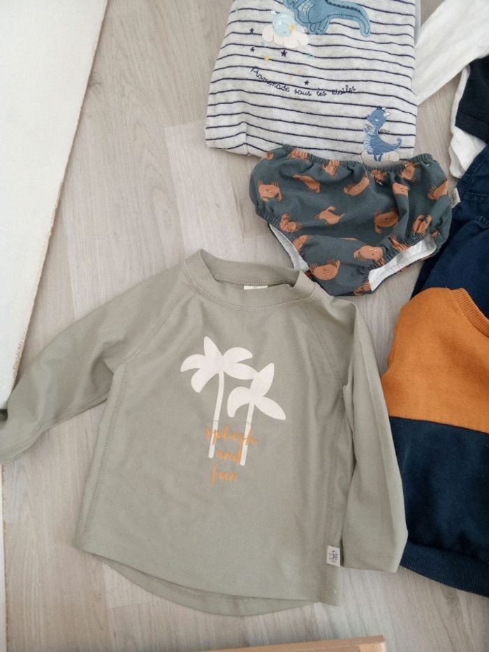 Maillot de bain+haut (pour réguler la température ) 6 bodys manche longue Combinaison froid 1 Combinaison + Un coupe froid + 1 Sweet + 1 ensemble pentalon &heut bleu +3 pyjamas manche longue