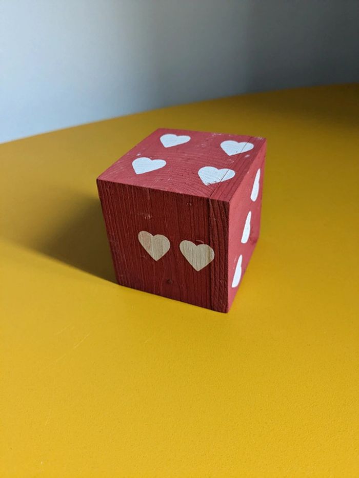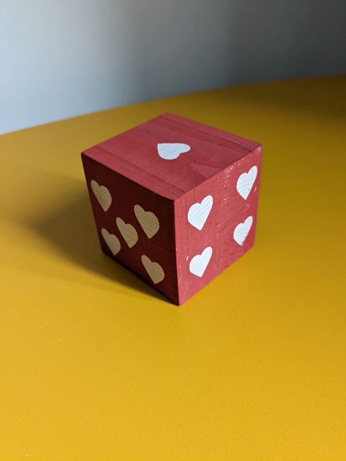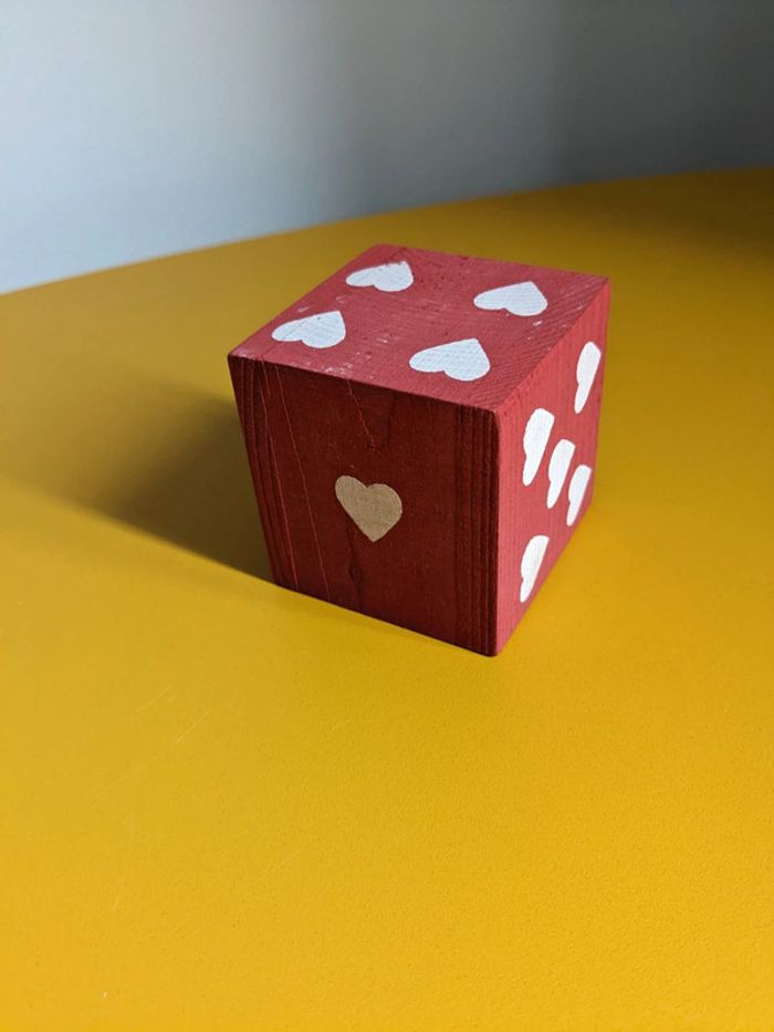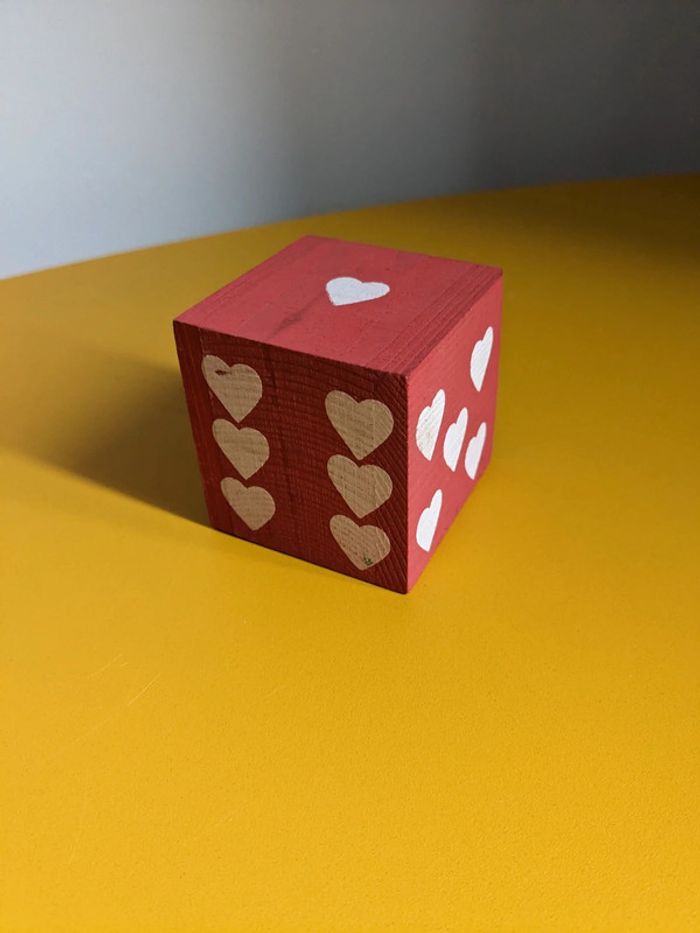 Dès rouge et coeurs blancs