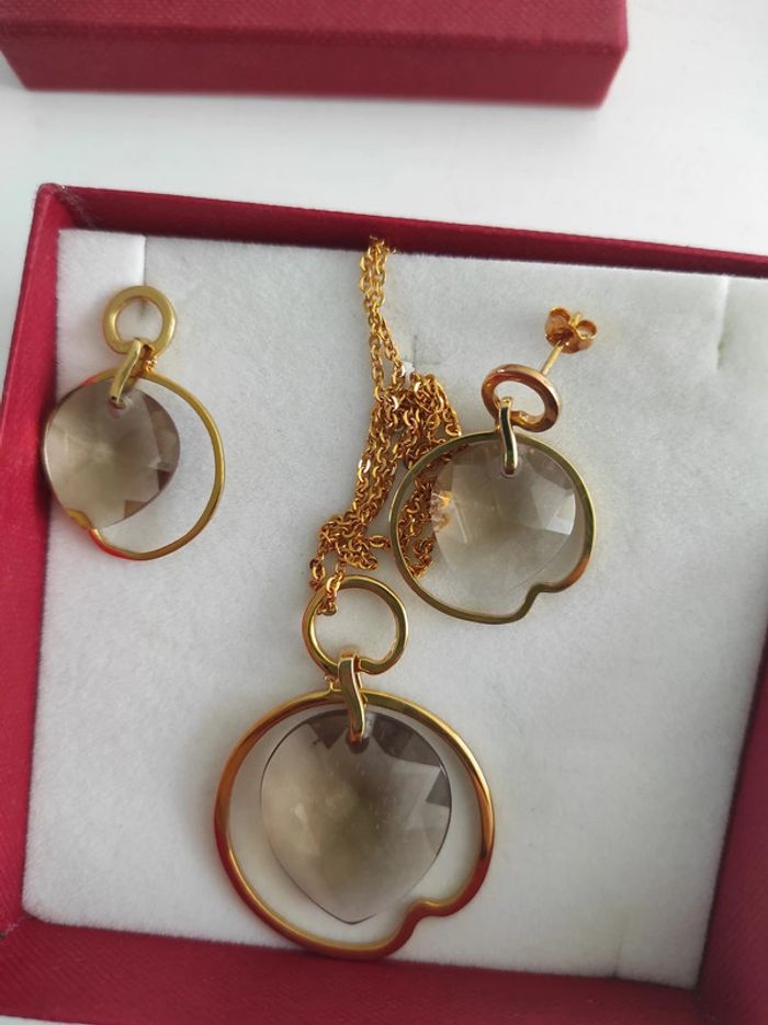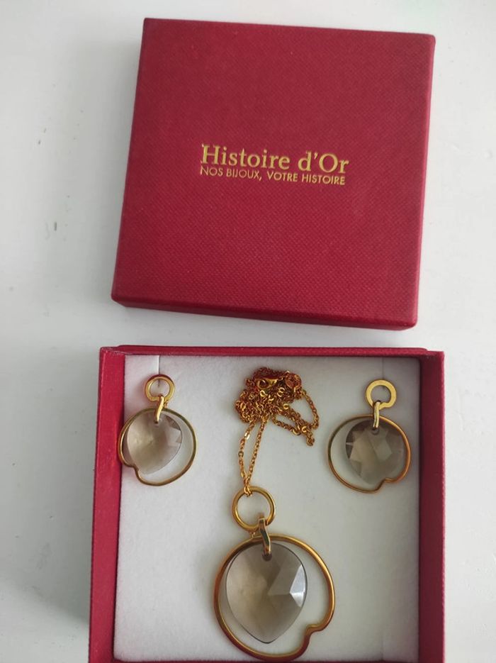 Plaqué or et verre brun. collier 42cm et boucles d oreille #pupuceetsapucefemmebijou