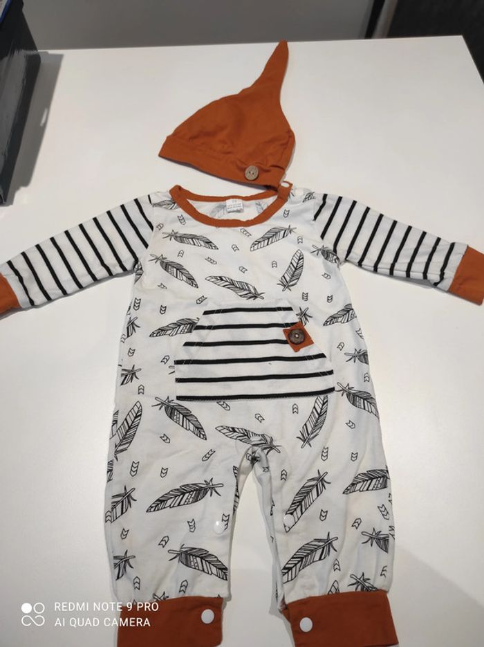 ensemble bonnet grenouillere neuf 6/9mois - photo numéro 2