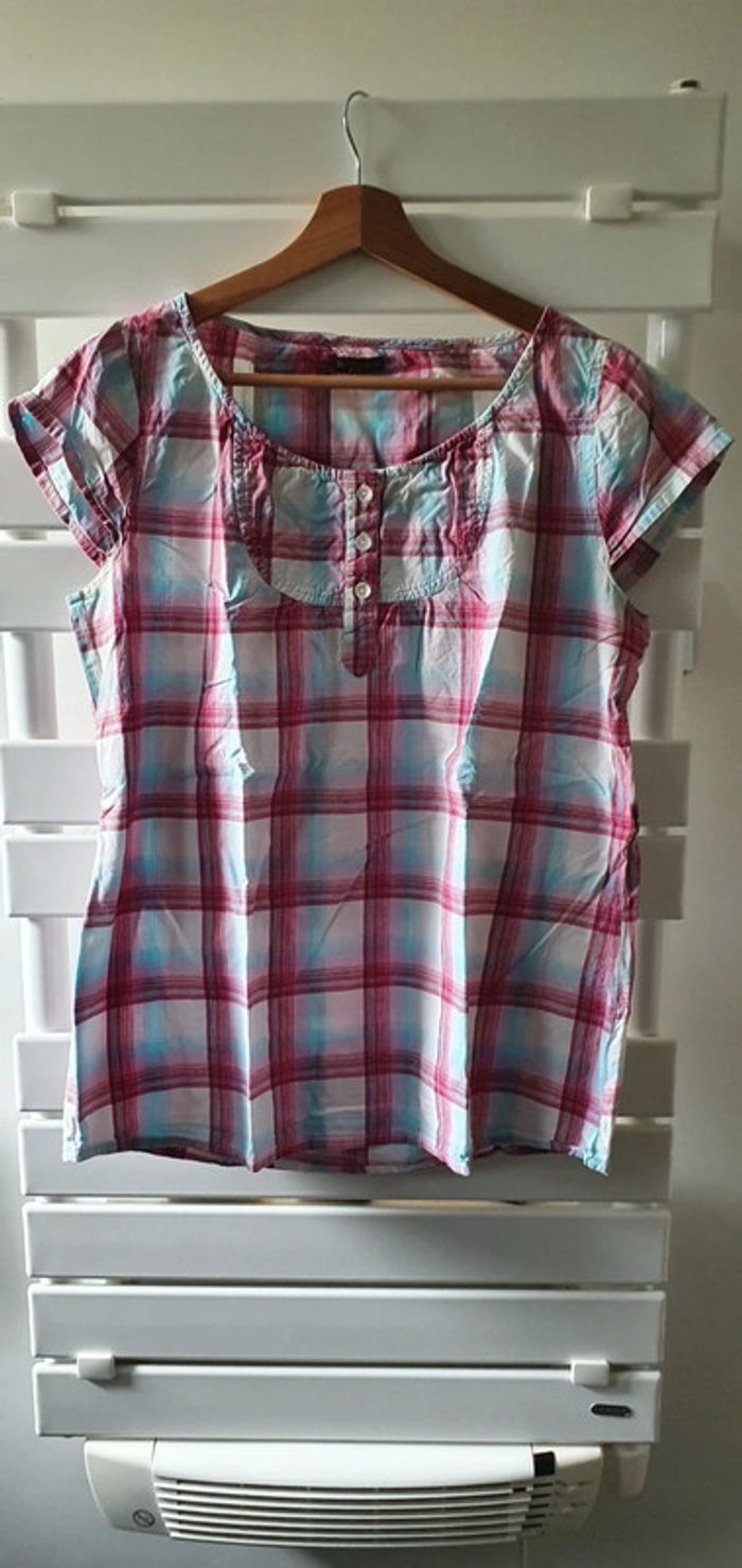 Chemisier manche courte à carreaux - photo numéro 1