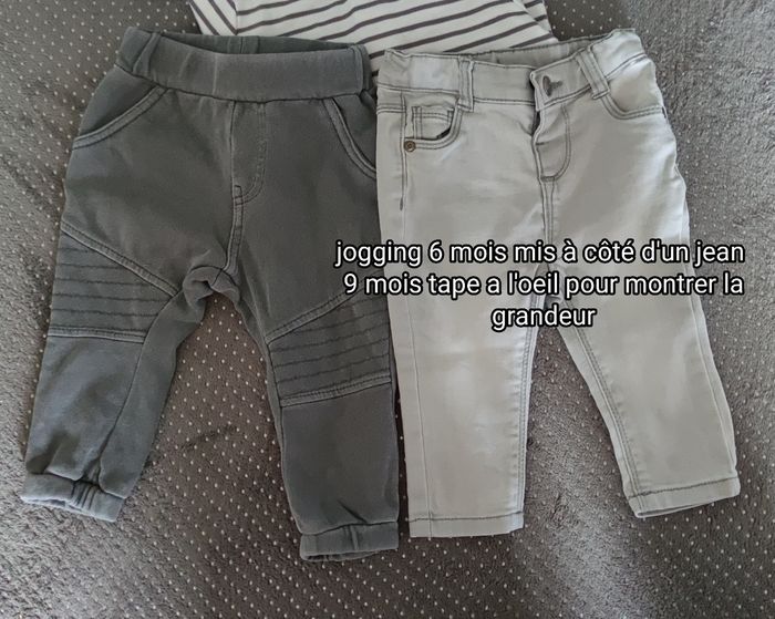 Le pantalon est indiqué 6 mois mais taille grand j'ai mis un jean de marque Tape à l'oeil à côté pour montrer la taille