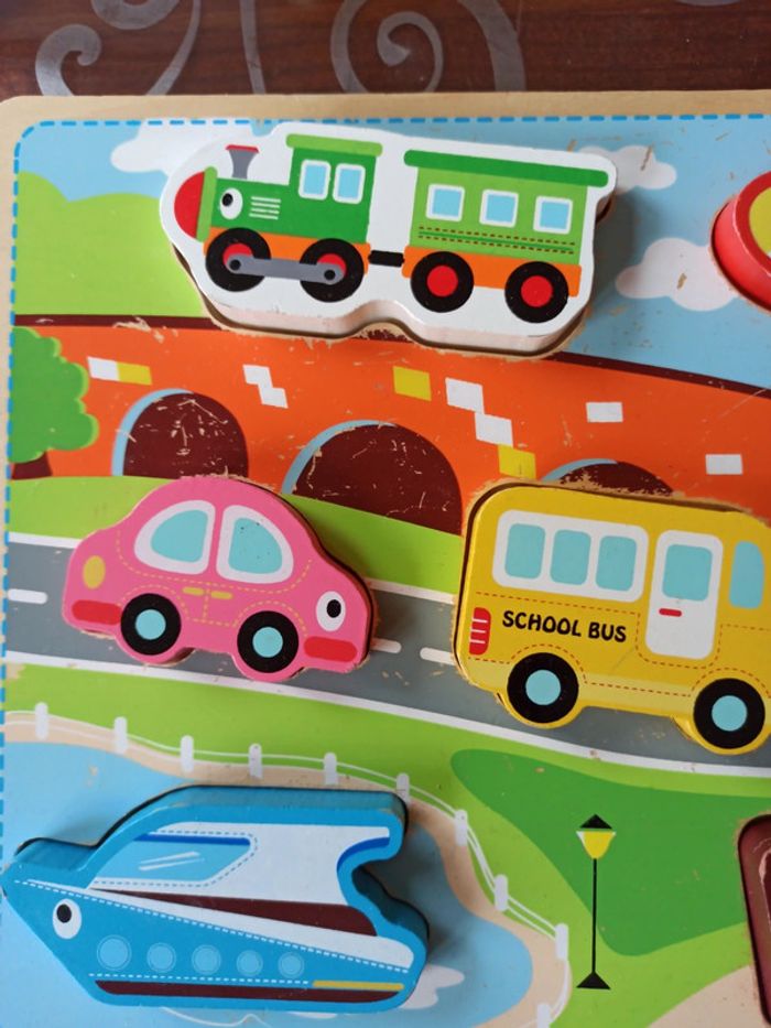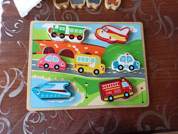 7 pièces tout en bois Bien utilisé donc un peu de peinture abîmé mais c'est tout Adoré par mon fils, un grand passionné des véhicules #lucasandciejouets