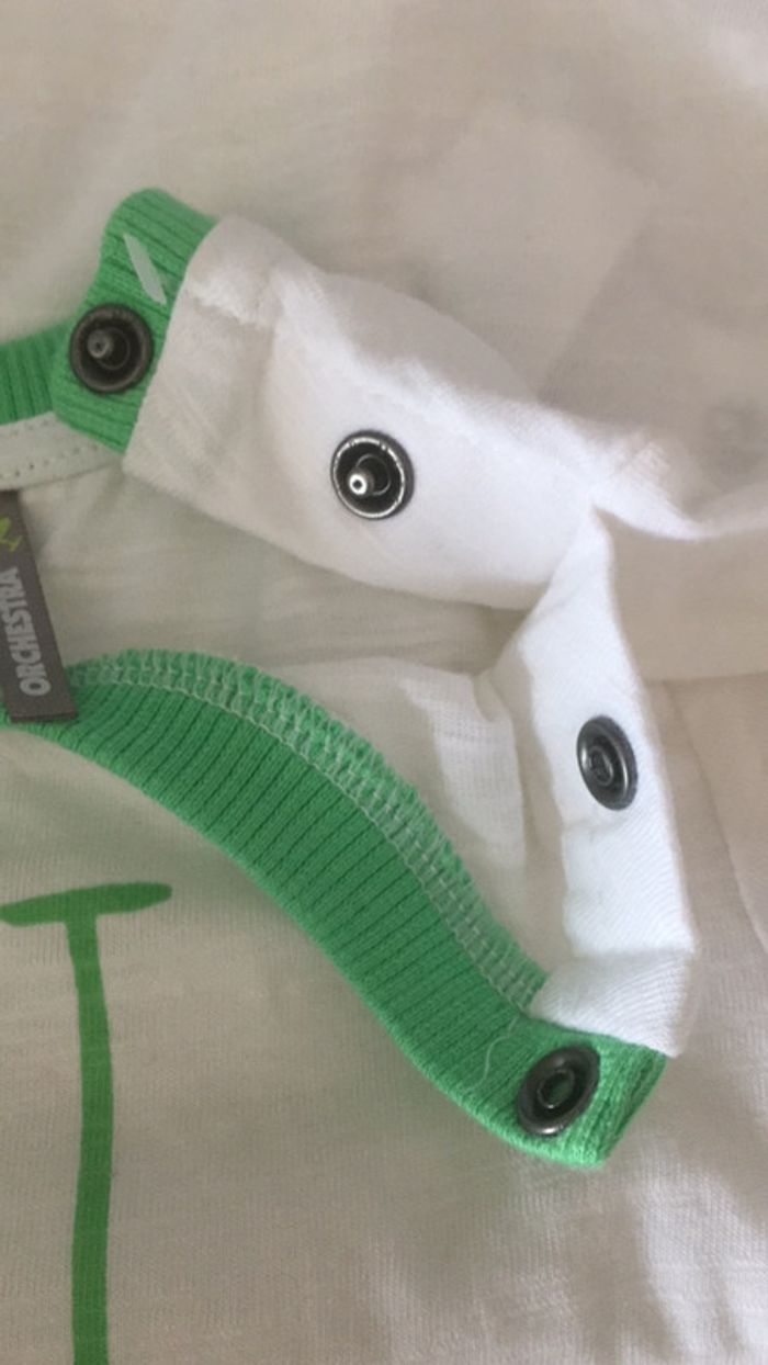 marque orchestra neuf l’étiquette est partie couleur vert blanc jaune avec citrons dessinés #lucasandcie9mois
