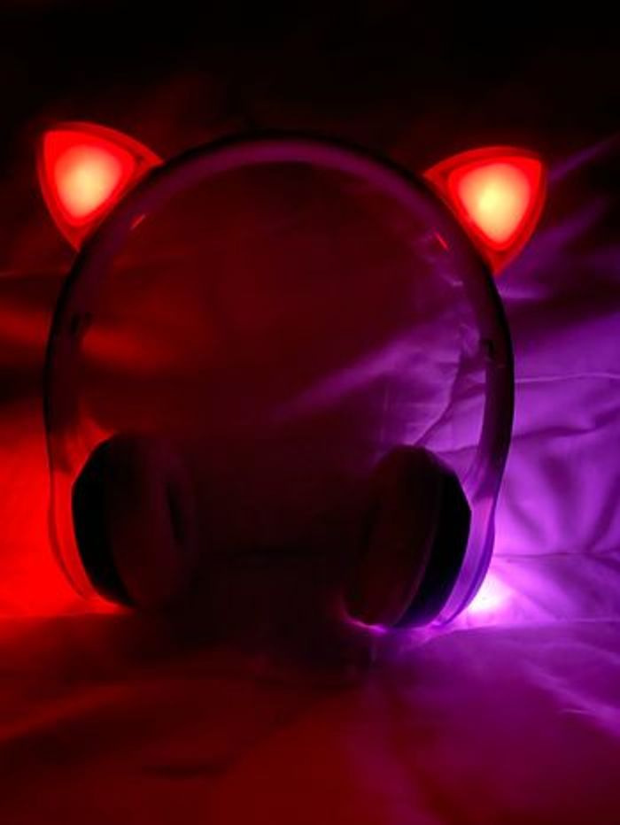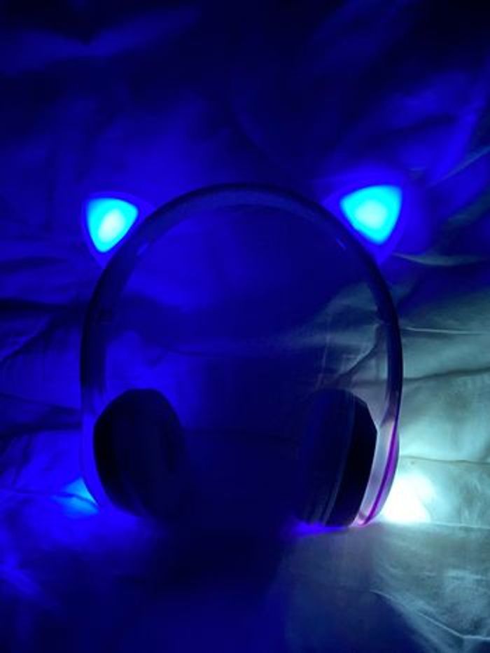 Bonjour Vend casque pliable forme de chat On peut le connecter au Bluetooth Très bon son avec son jeux lumineux. Disponible en violet , noir , rose