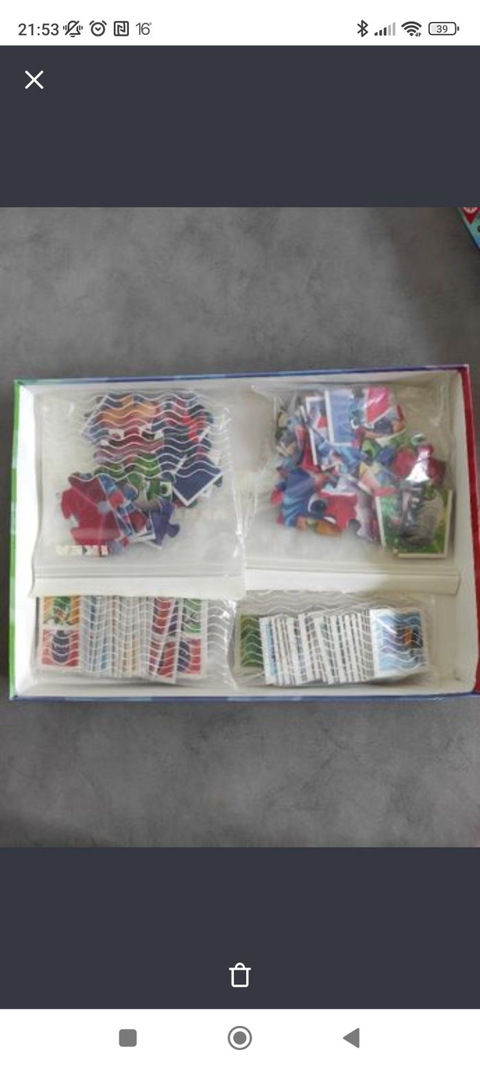 4 jeux en 1 : domino, mémo, 2 puzzles 25 pièces. Boîte usagée, mais complet et pièces en bon état.