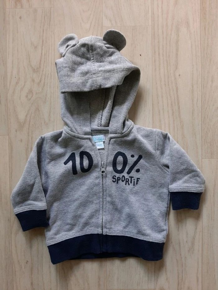 Très beau sweat à capuche avec fermeture à zip Motif 100% sportif de chez Kimbaloo Taille 1 mois 60% Coton 40% Polyester