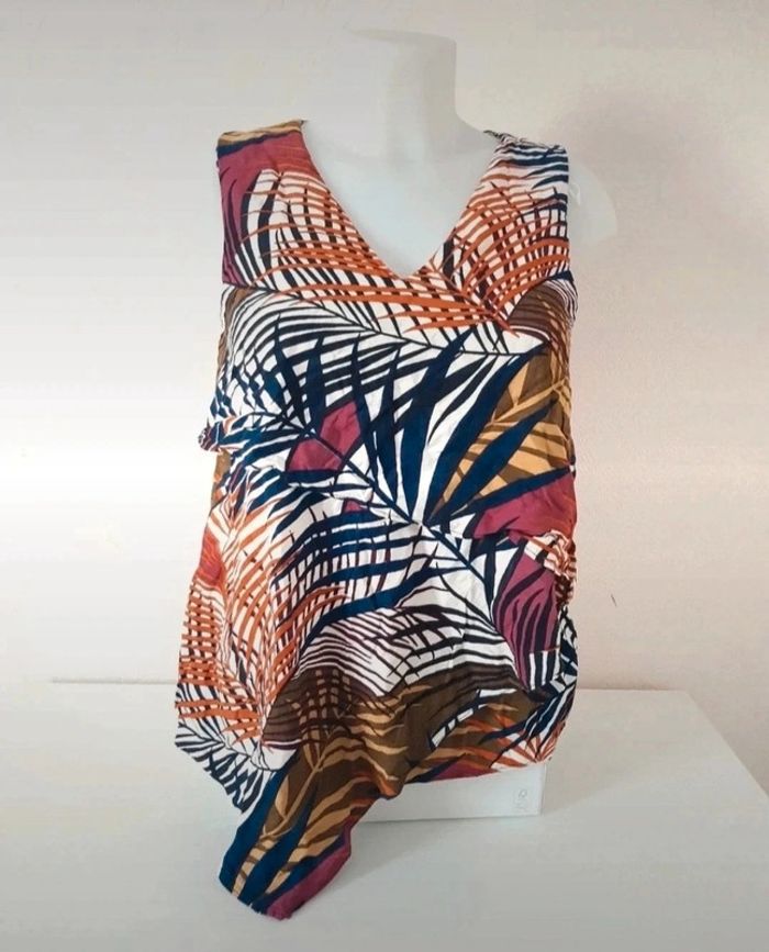 Débardeur avec volants imprimé feuilles Très bon état