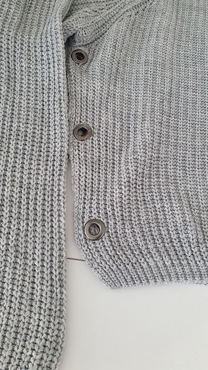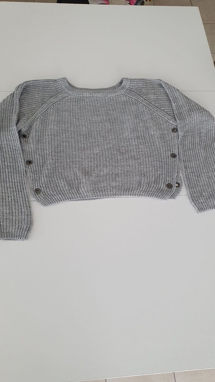 Pull gris en très bon état Complètement ouvert sur les côtés Possibilité d'ajouter des rubans