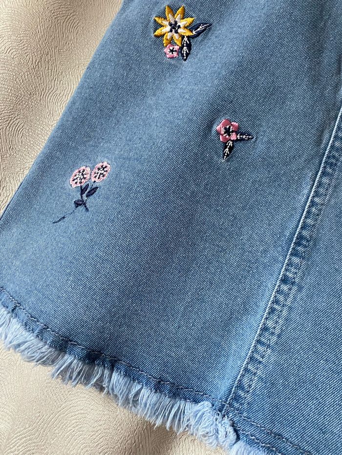 Jupe en jeans brodée de fleurs 12 ans Lili Marelle