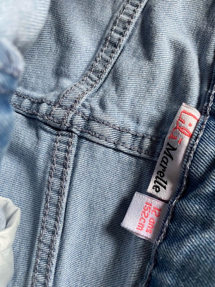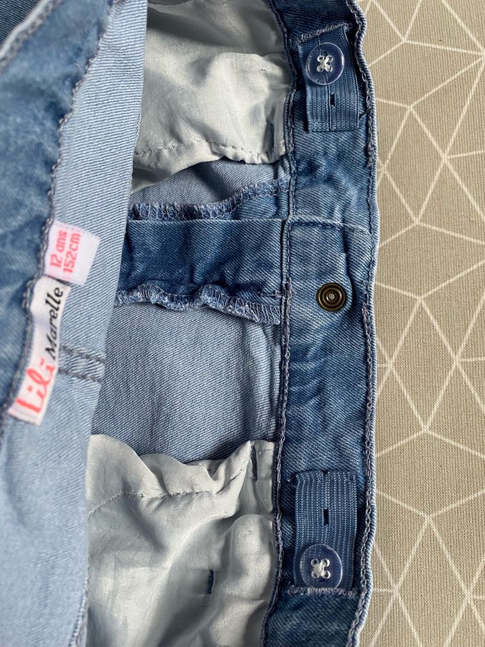 Jupe en jeans bleu brodée de fleurs Taille 12 ans 152 cm Réglable à la ceinture 99% coton 1% elasthane Marque Lili Marelle Longueur 38,5 cm