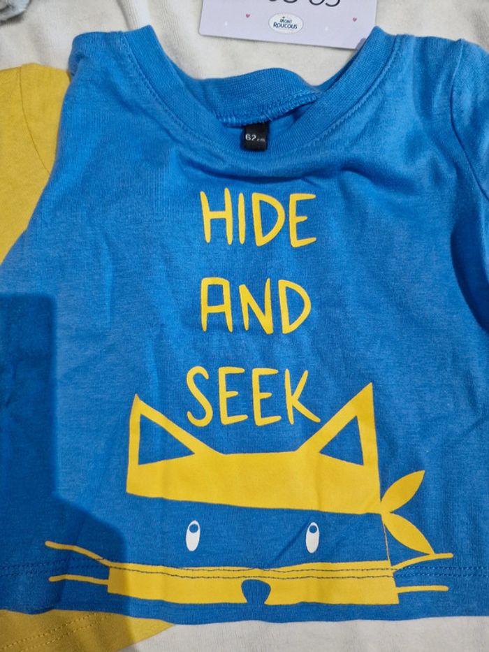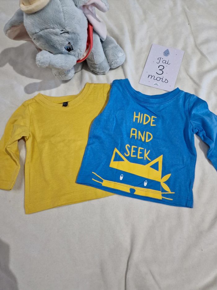 T-shirt manches longues 62 cm sans marque je donne le jaune petit trou en coupant l'étiquette #ab3moisgarcon