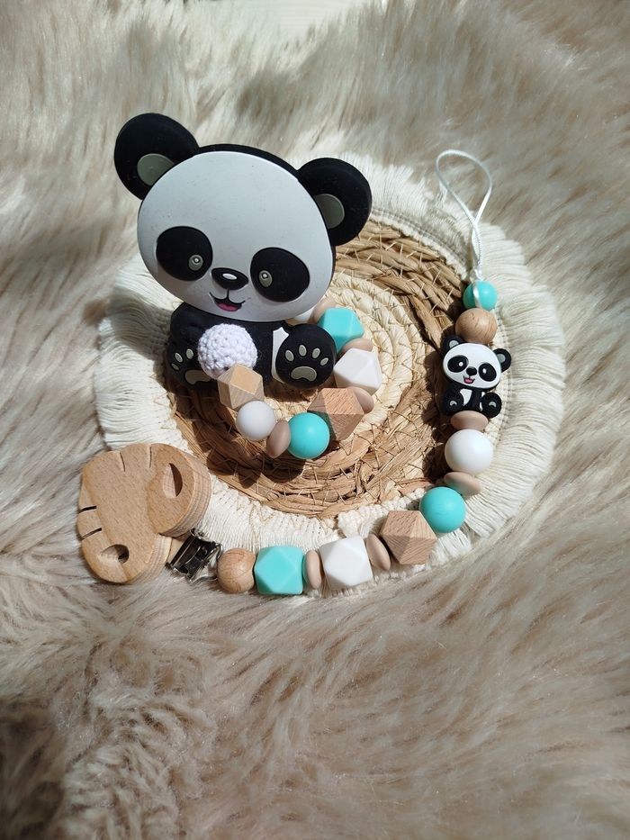 Attache tétine+ anneau de dentition assorti Silicone alimentaire et bois naturel D'autres coloris possibles